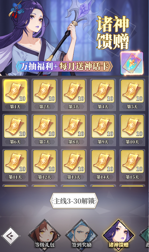 2.在線(xiàn)資源多多,新玩家在線(xiàn)30分鐘可免費獲得靈玉*100、隨機五星神靈*1、SSR卡自選包*1、請神符*10以及若干材料。