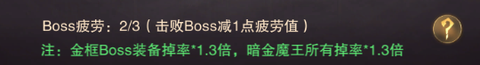 挑戰BOSS需要消耗BOSS疲勞,每天有3次的免費挑戰機會(huì )。隨著(zhù)轉生等級的提高,可以挑戰的層數就越高,其中每層的黃金領(lǐng)主與暗金魔王裝備掉率是1.3倍,建議把次數都用于挑戰這兩個(gè)BOSS。